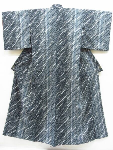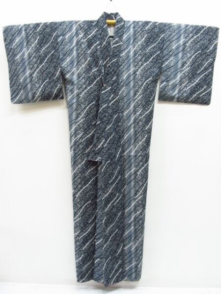 化繊 小紋 きもの工房 斜線 たたき染め モダン Lサイズ 袷 身丈166cm 裄67cm
