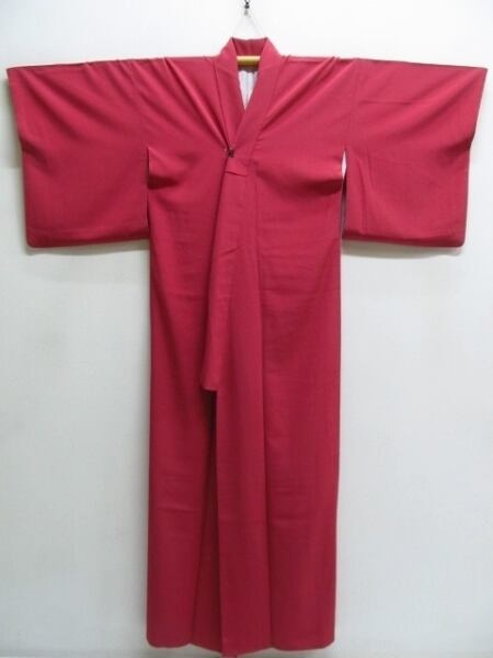 化繊 色無地 一つ紋 縮緬 袷 身丈167cm 裄66cm