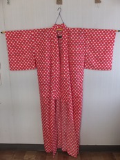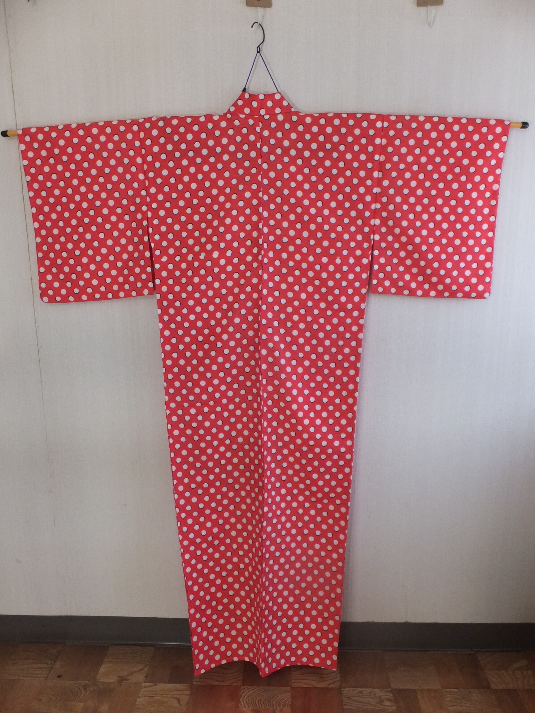 洗えるカジュアル着物 水玉 単衣 化繊